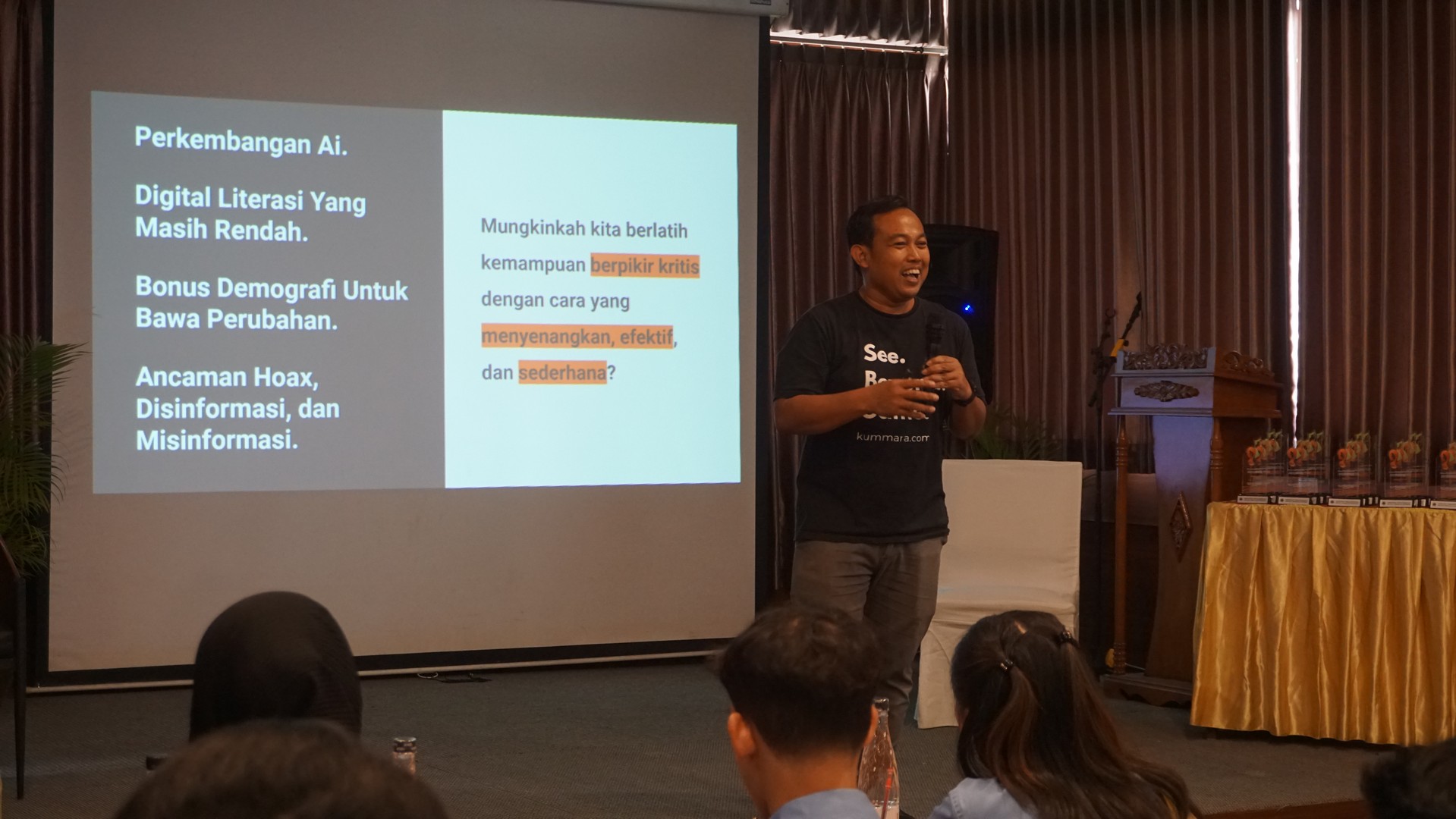 "Sesinya sangat komunikatif dan juga membangun sosialisasi dan diskusi yang kritis tidak hanya bersama teman sebelah namun juga dengan kelompok dan memutuskan suatu pilihan dari jawaban-jawaban yang berbeda."